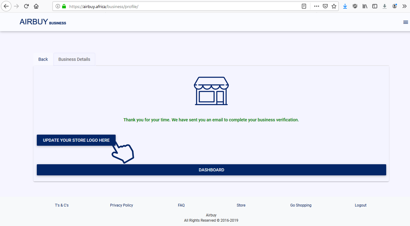 UPDATE YOUR STORE LOGO HERE. If you do not have a logo, click on DASHBOARD.