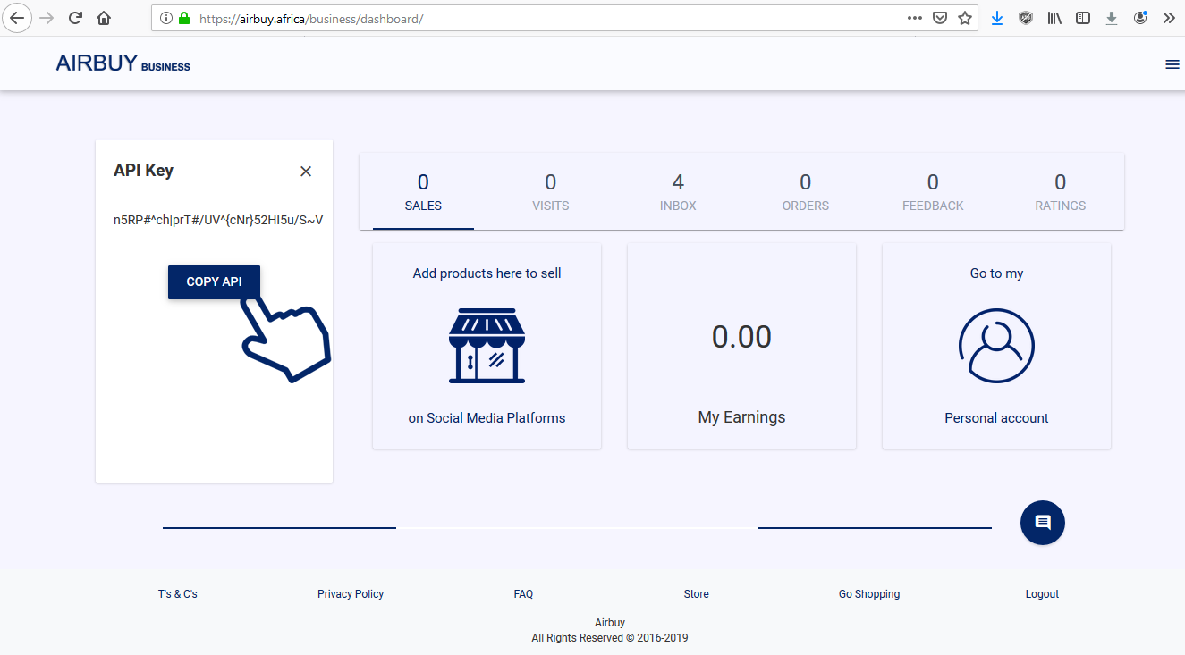 email address you entered in your business profile to activate your account. You will get access to your API key and you will be able to sell online.