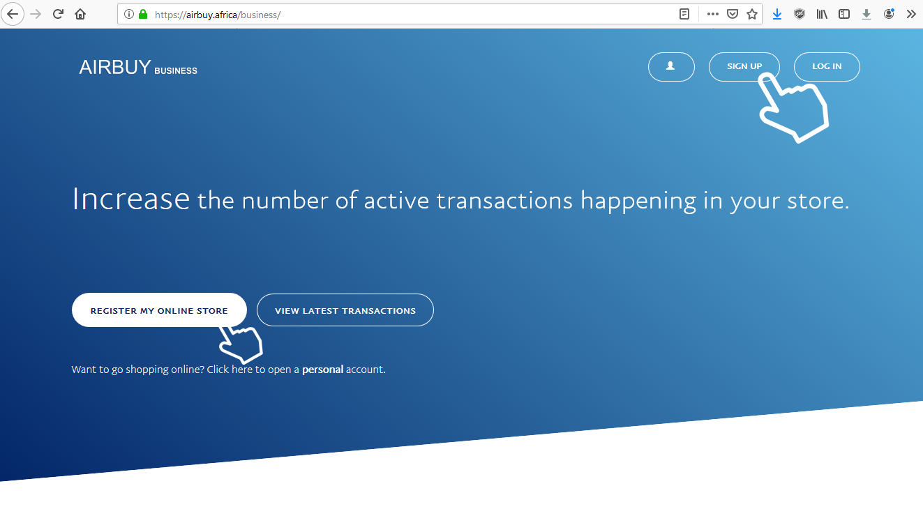 follow the hand symbol and click on the link to Sign Up as a Seller also known as a Merchant.