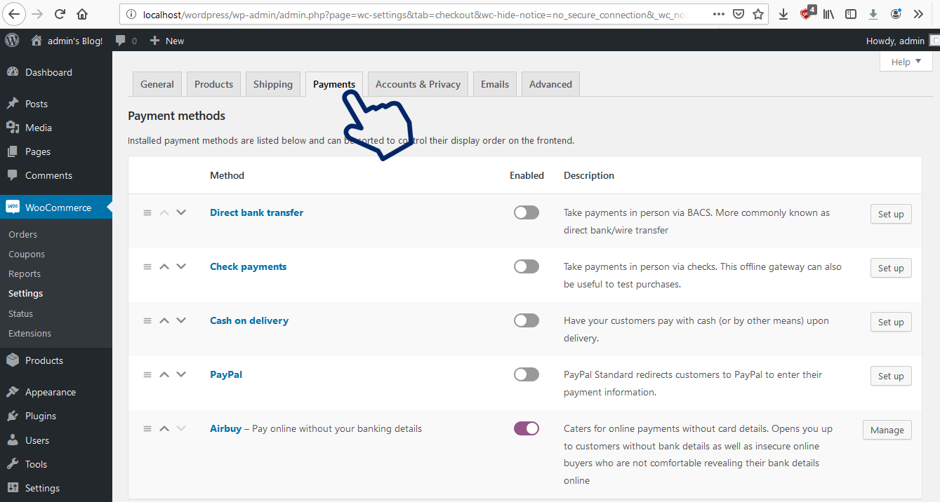 WooCommerce on the left hand panel and select settings.