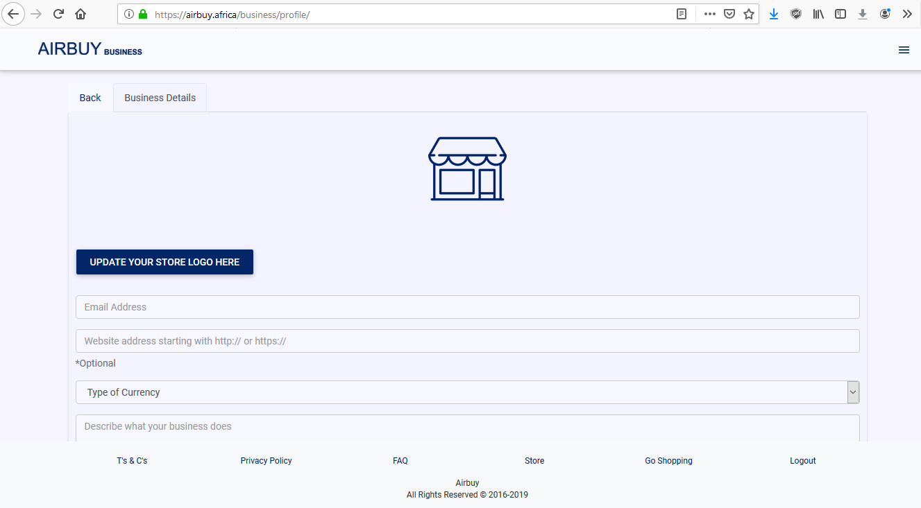 business details which will be needed to verify your merchant account.