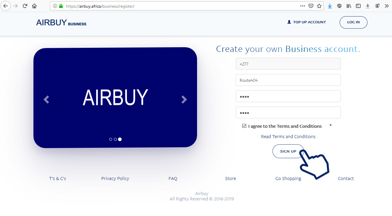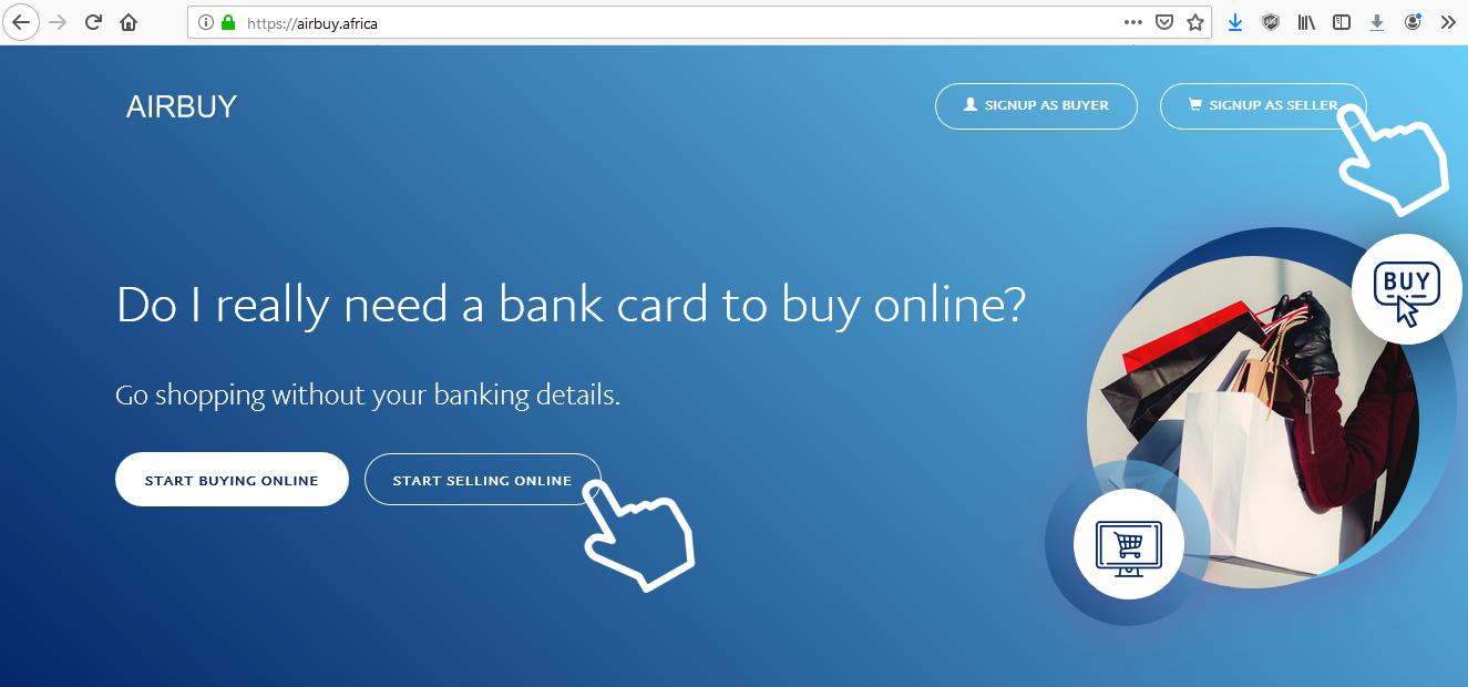 follow the hand symbol and click on the link to Sign Up as a Seller also known as a Merchant.