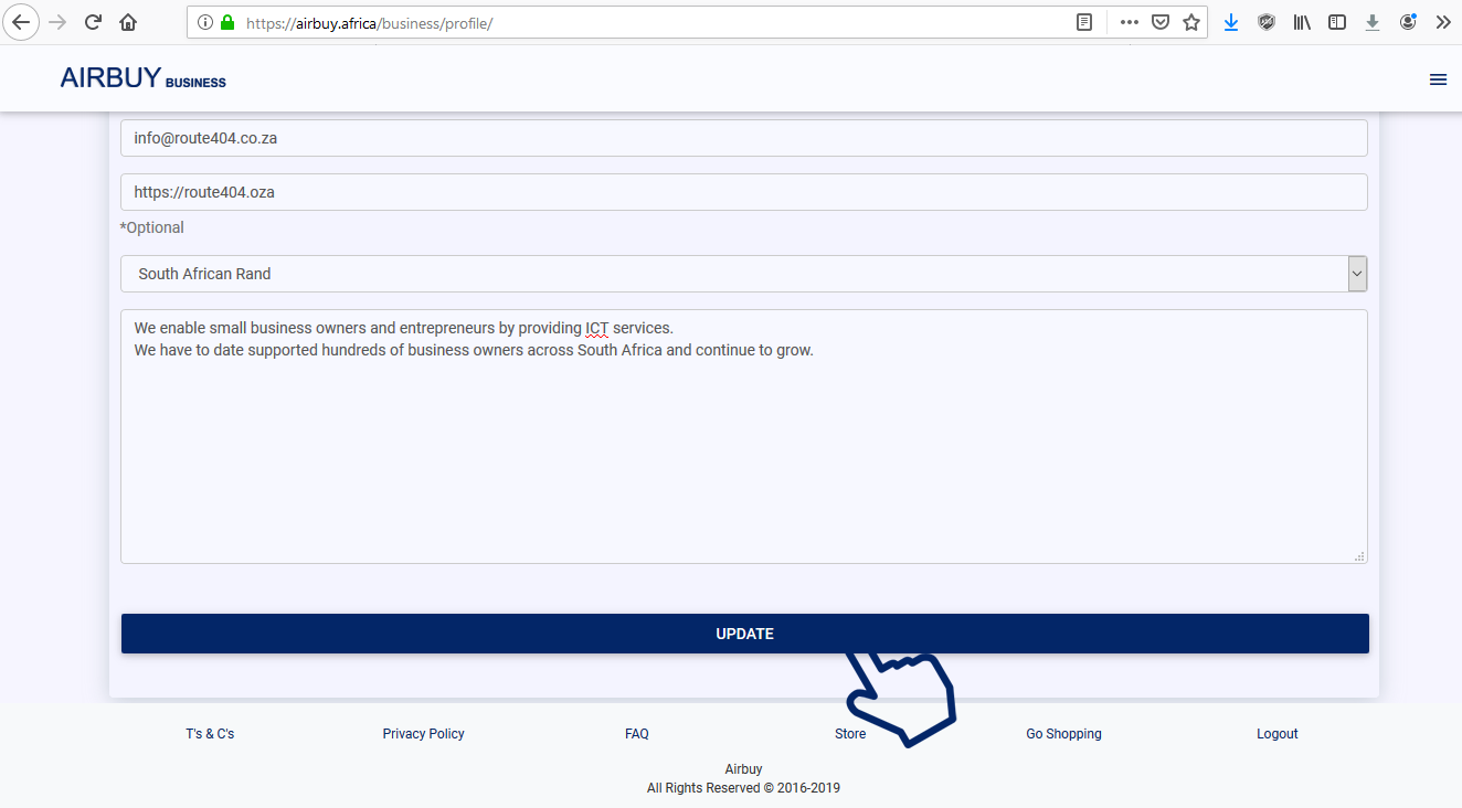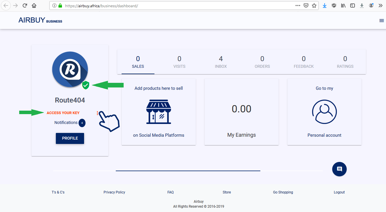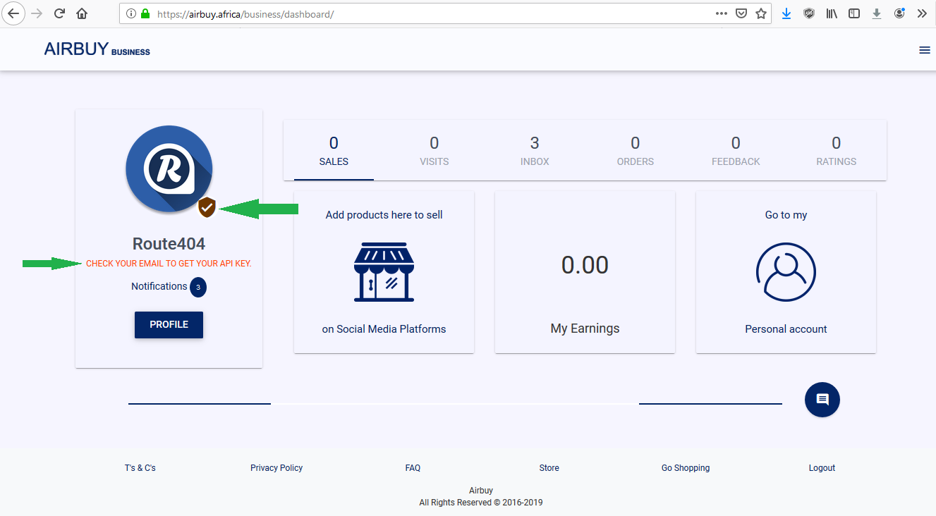 email address you entered in your business profile to activate your account. You will get access to your API key and you will be able to sell online.