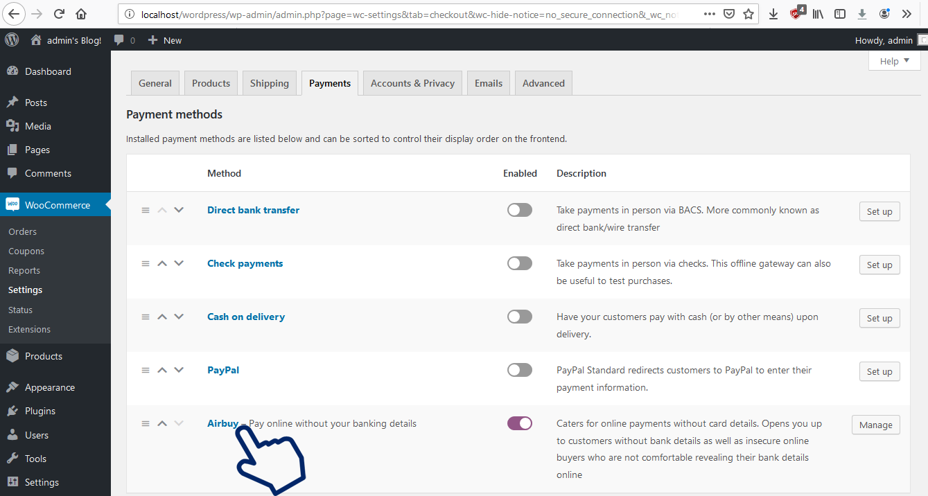 WooCommerce on the left hand panel and select settings.